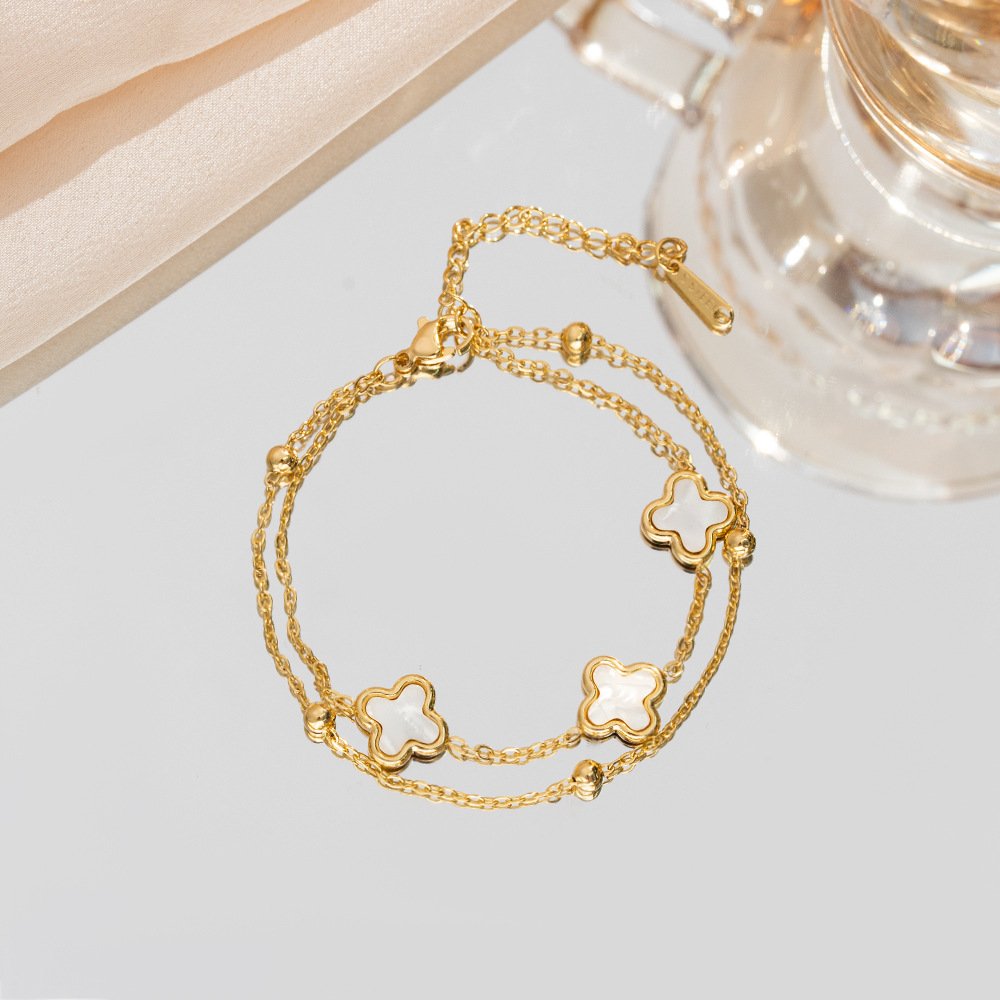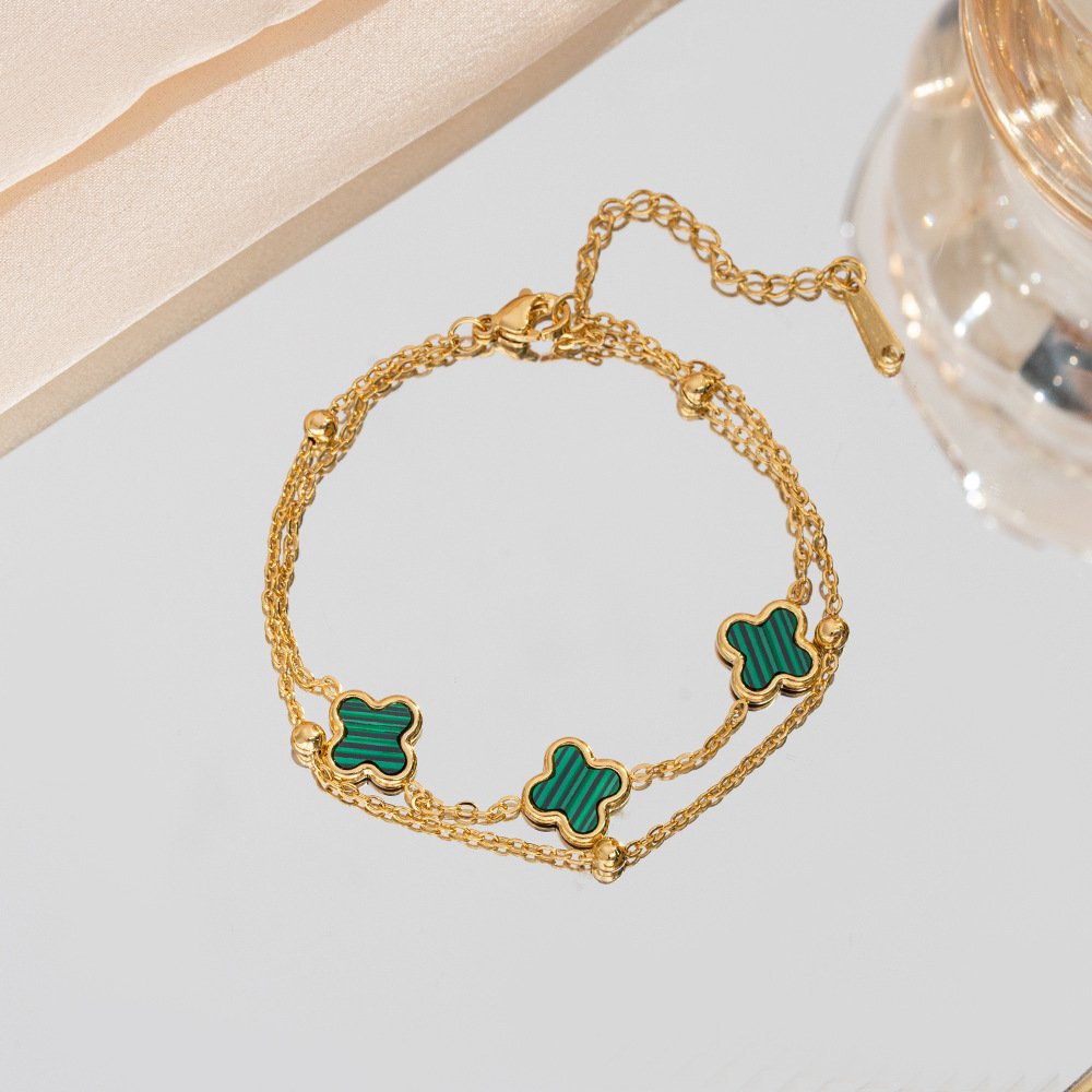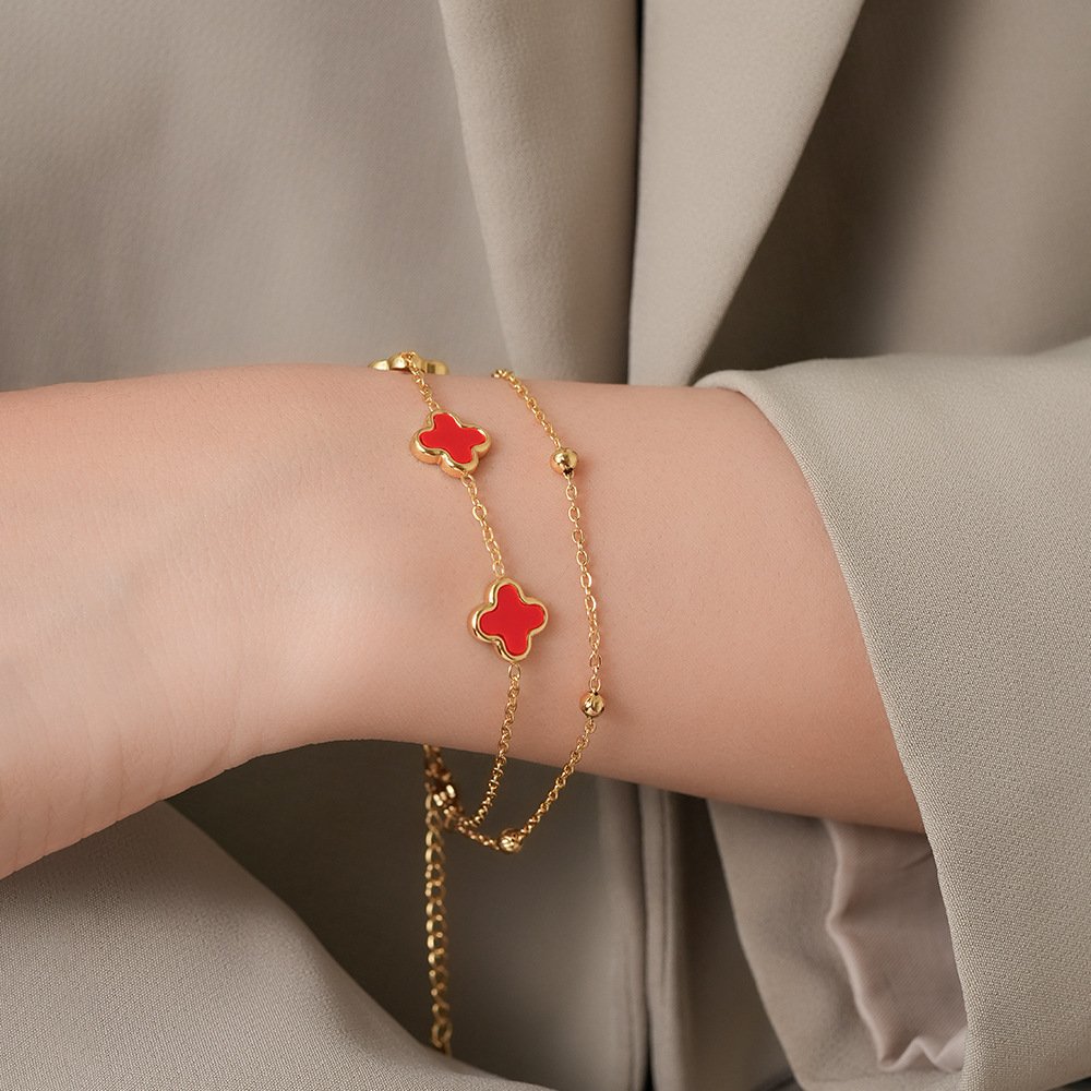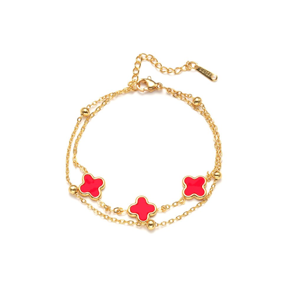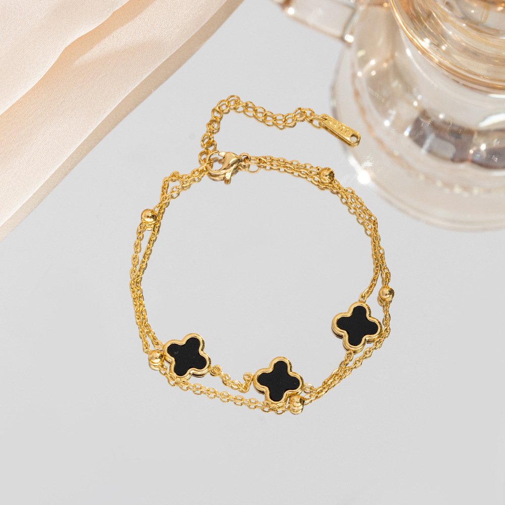 Black Clover Double Layer Gold Bracelet 18K Plated Enamel Four Leaf Clover Bracelet