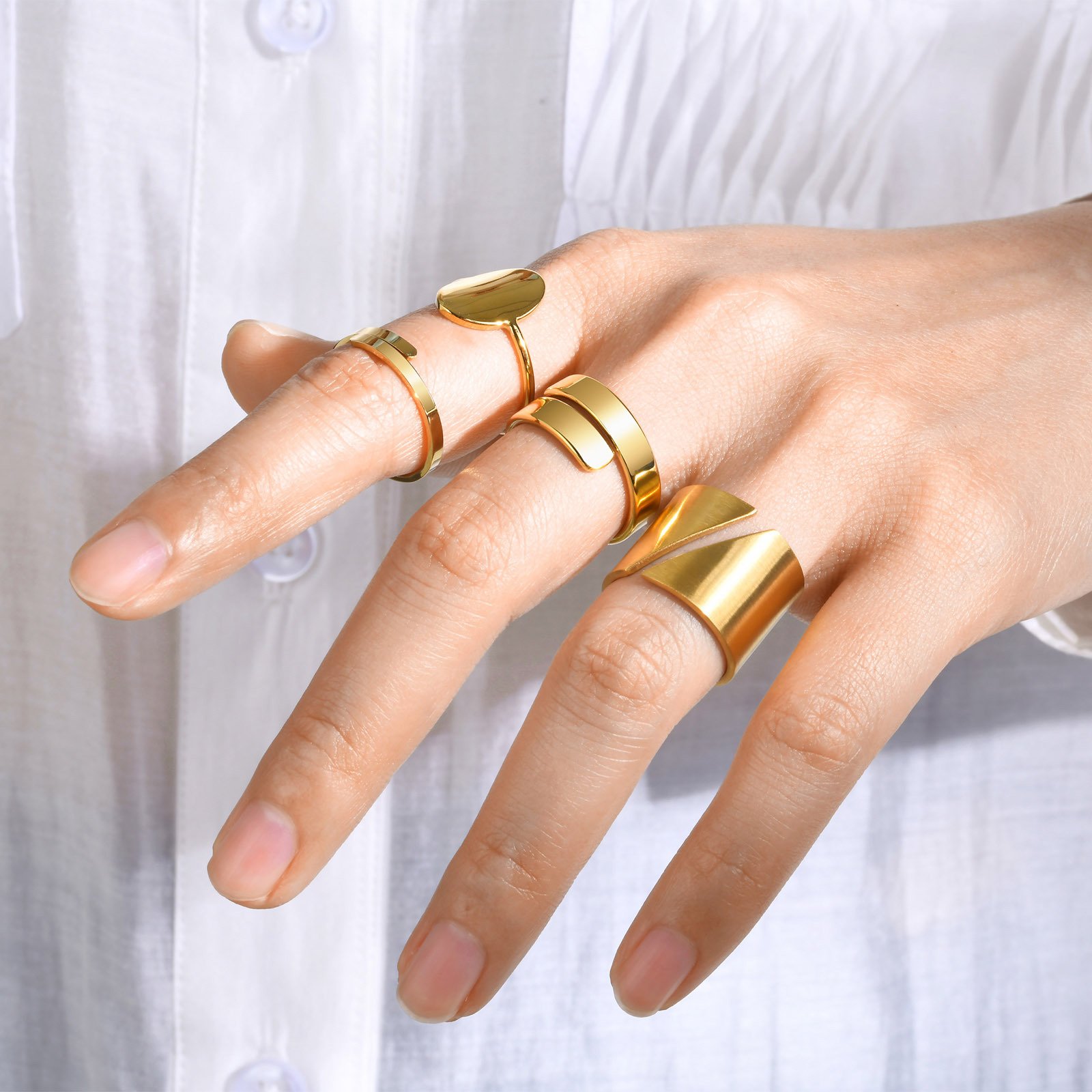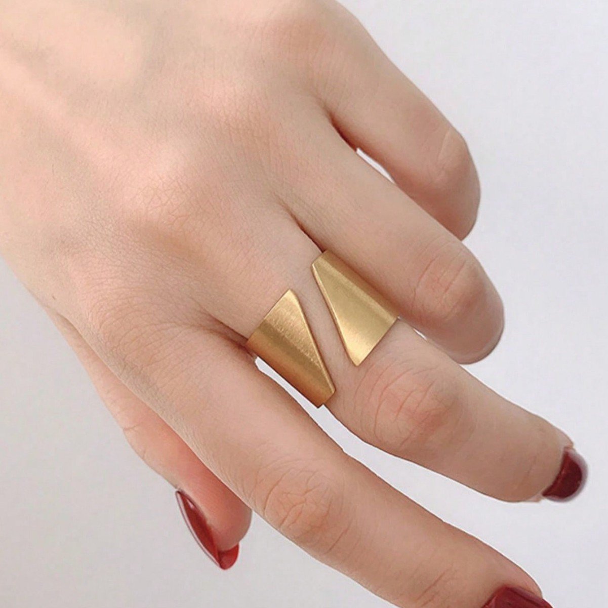 Chunky Slit Gold Cuff Ring | Brushed Wide Band Open Statement RingAvailability: 1998 in stock