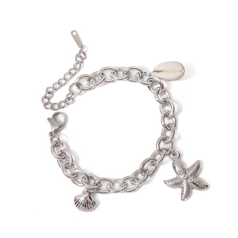 Coastal Charm Chain Bracelet This coastal charm chain bracelet set is designed for B2B wholesale partners, featuring polished stainless steel chains in gold and silver tones, accented with natural shell, 3D starfish, and seashell pendants for a playful, beach-inspired look. The adjustable chain ensures a comfortable fit for most wrist sizes, while the lightweight construction makes it ideal for everyday wear. The waterproof, hypoallergenic, and nickel-free construction ensures irritation-free, long-lasting wear, while the non-tarnish plating preserves the warm gold and cool silver finishes through daily use. Perfect for resale in fashion boutiques, online stores, and resort retail chains, this bracelet set transitions seamlessly from casual beach days to summer evenings. We offer flexible MOQs, competitive bulk pricing, and private labeling options to support your business growth. All products undergo strict quality control to ensure durability and consistency across every batch. Partner with us to elevate your inventory with on-trend, high-demand jewelry pieces that appeal to modern consumers.