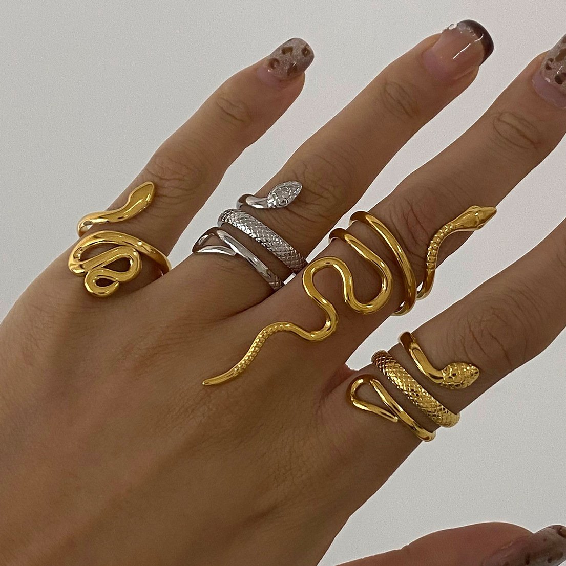 Designed with an open adjustable structure, this ring offers a comfortable fit for different finger sizes. Its sculptural form makes it ideal for daily wear, street style looks, or modern fashion styling. The snake symbolizes confidence, transformation, and individuality, making this ring a meaningful accessory for contemporary jewelry collections.