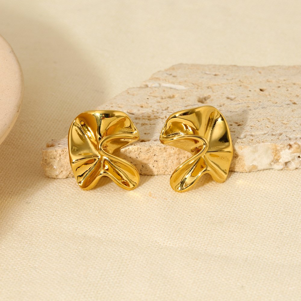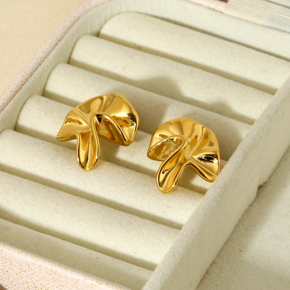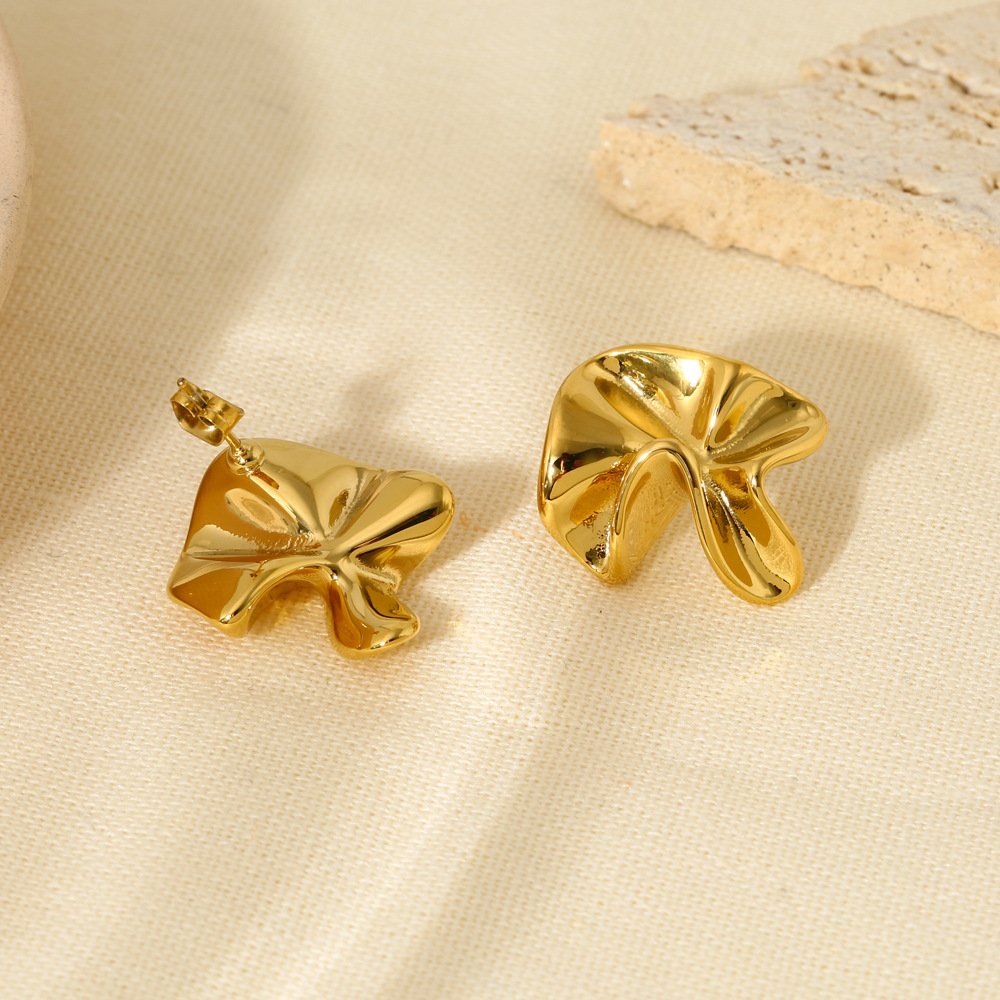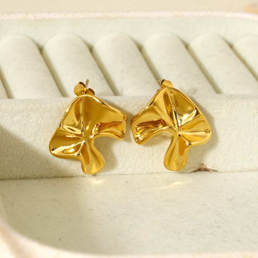 Gold Crinkled Mushroom Stud Earrings | 18K Gold Plated Abstract Statement Earrings