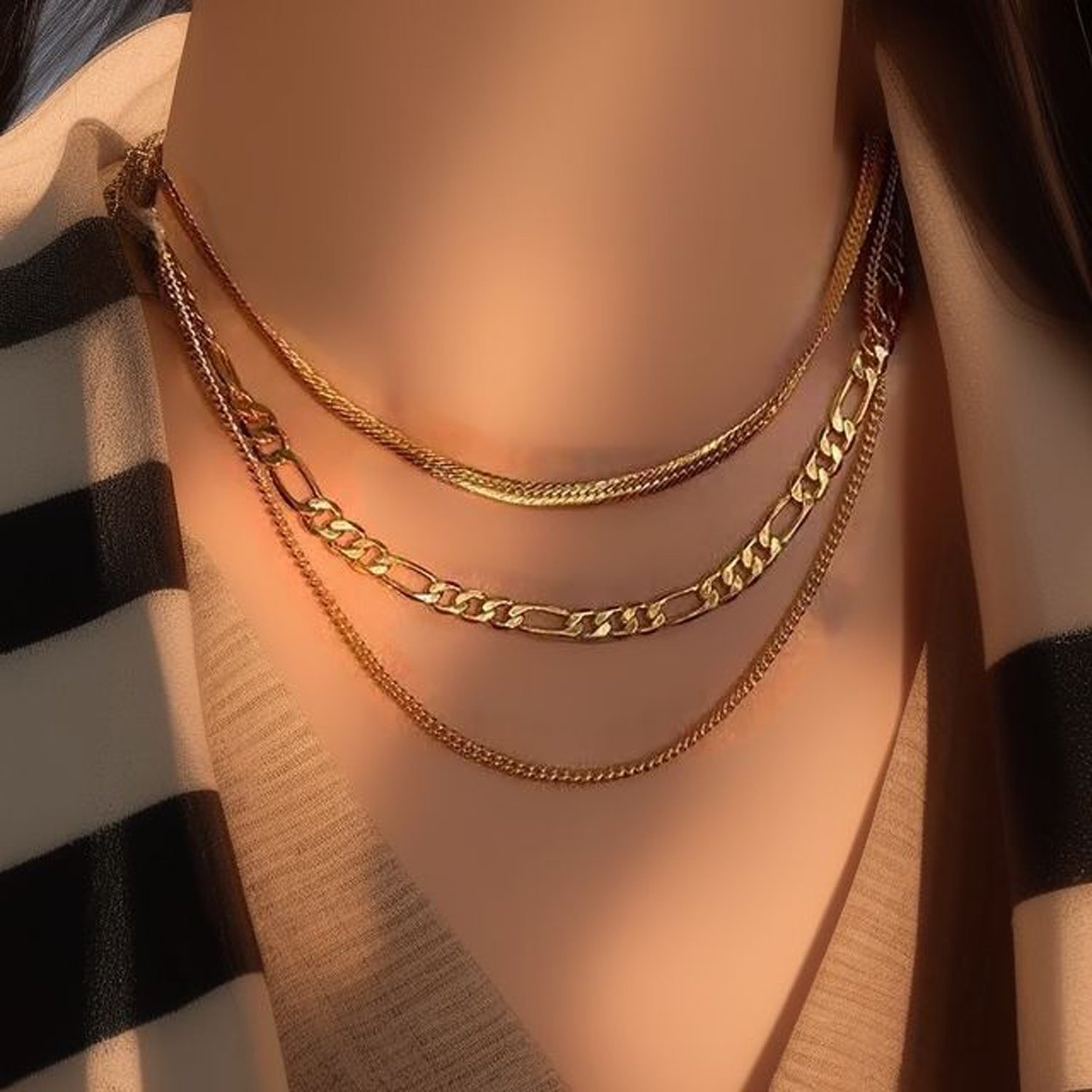 Gold Figaro Chain Choker Necklace | 18K Plated Chunky Minimalist Statement ChokerAvailability: 1998 in stock