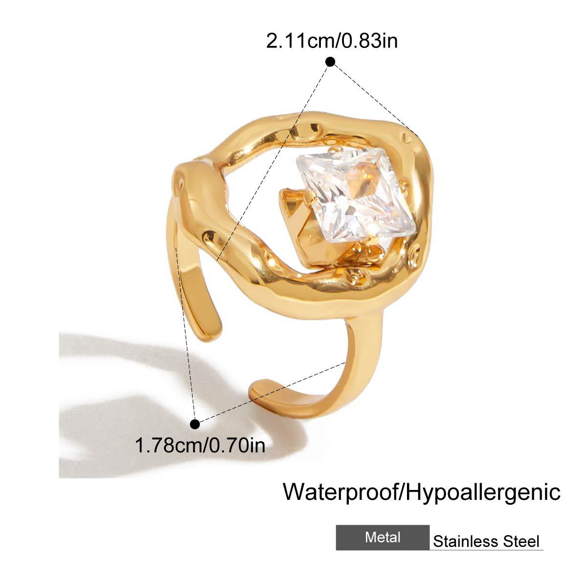 Gold Irregular Zircon Adjustable Ring | B2B Stainless Steel Jewelry Supplier