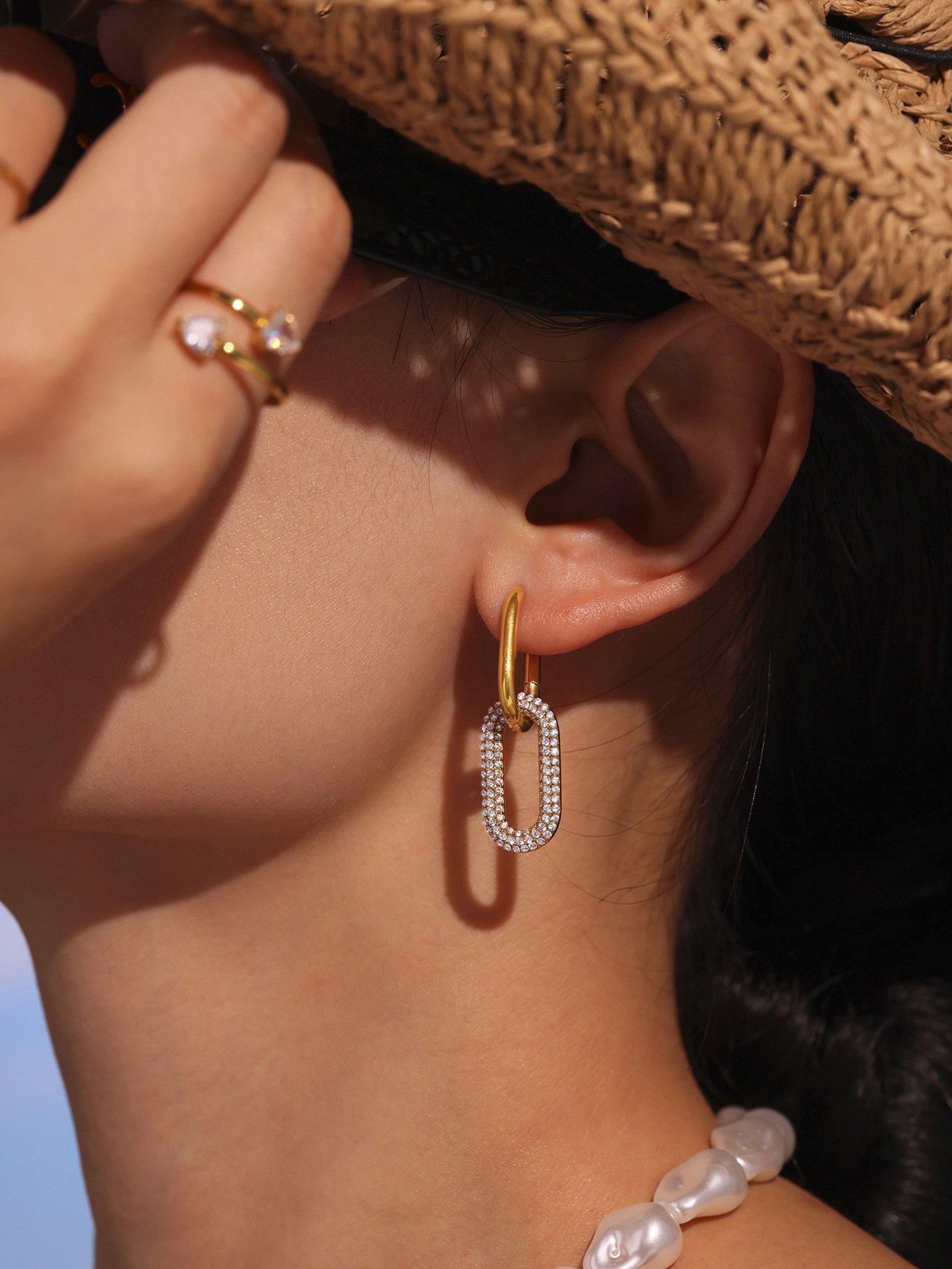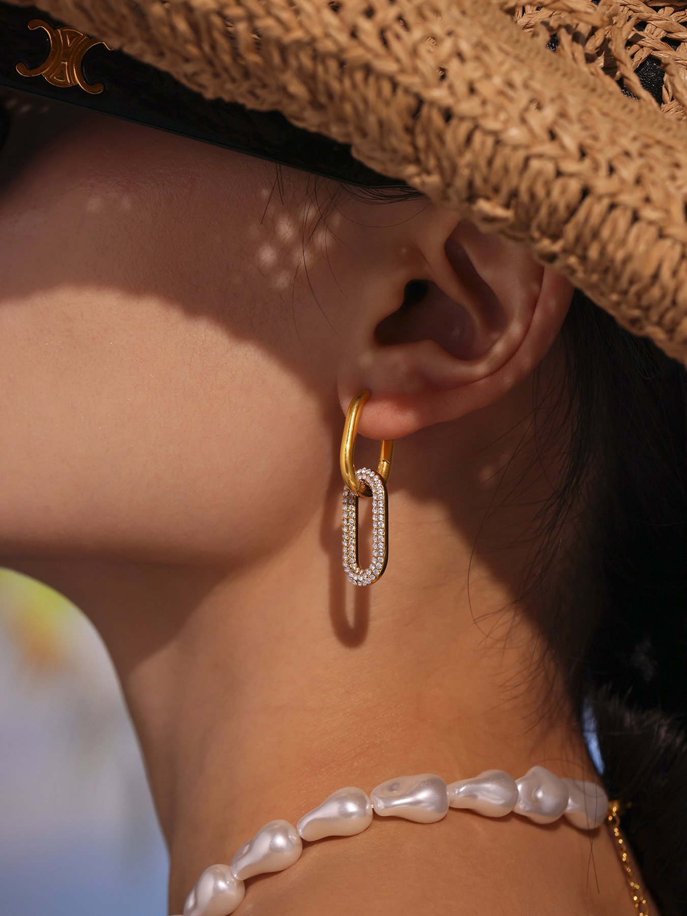 Gold Paved Crystal Paperclip Drop Earrings | 18K Plated Chunky Link Statement EarringsAvailability: 1989 in stock