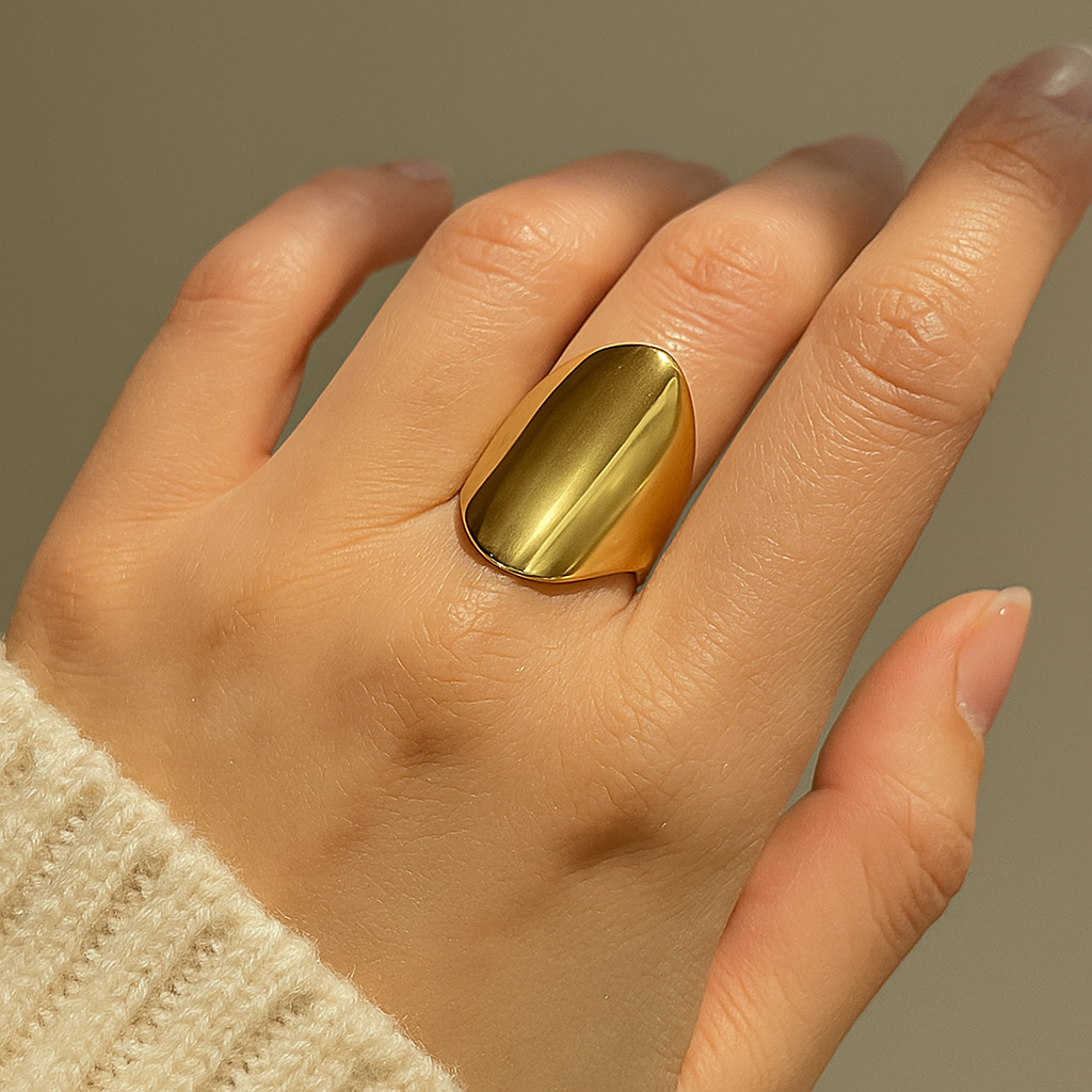 RingModern Sculptural Gold Statement Ring – Polished Minimalist Wide Band