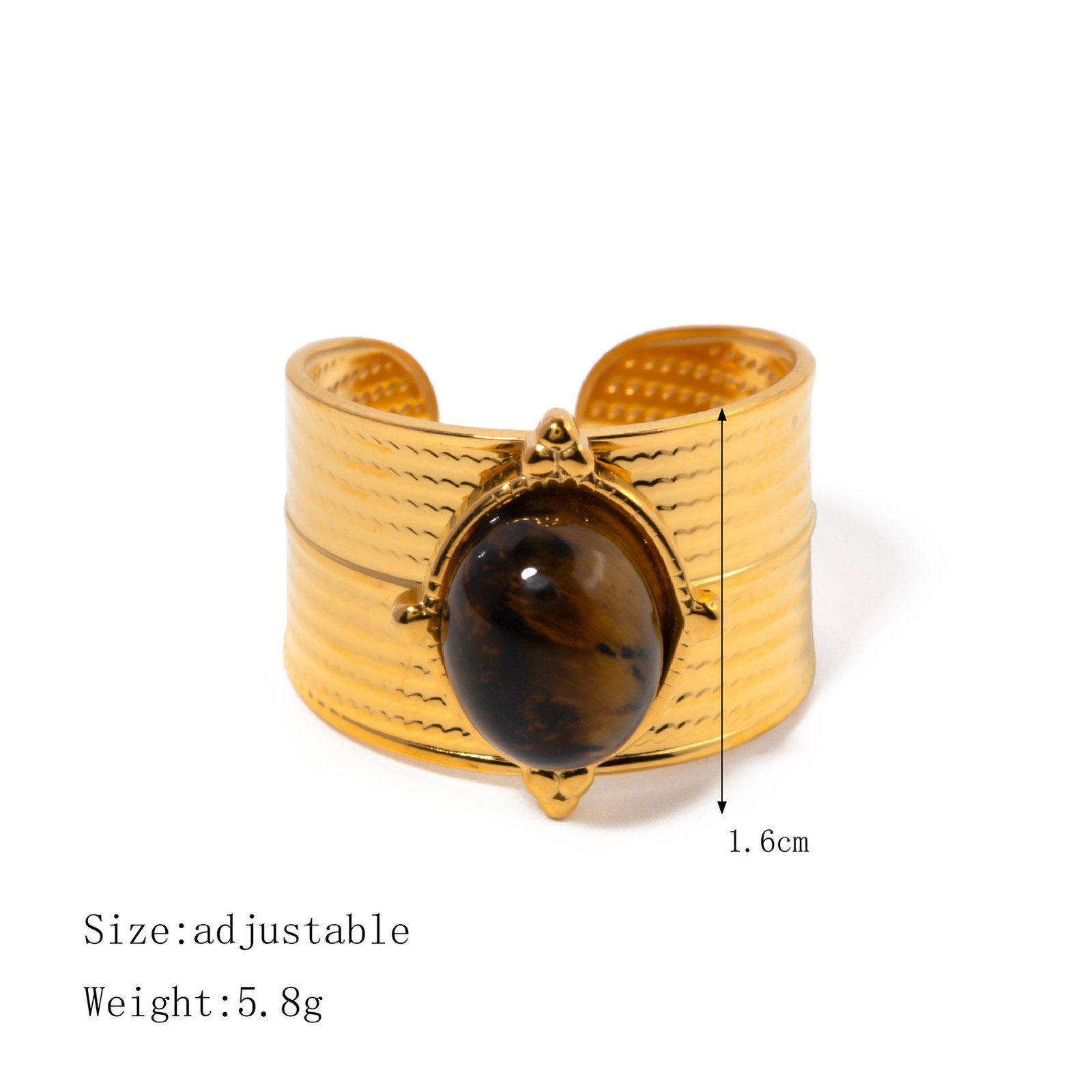 Material: 18K Gold Plated Stainless Steel + Natural Tiger Eye Stone
