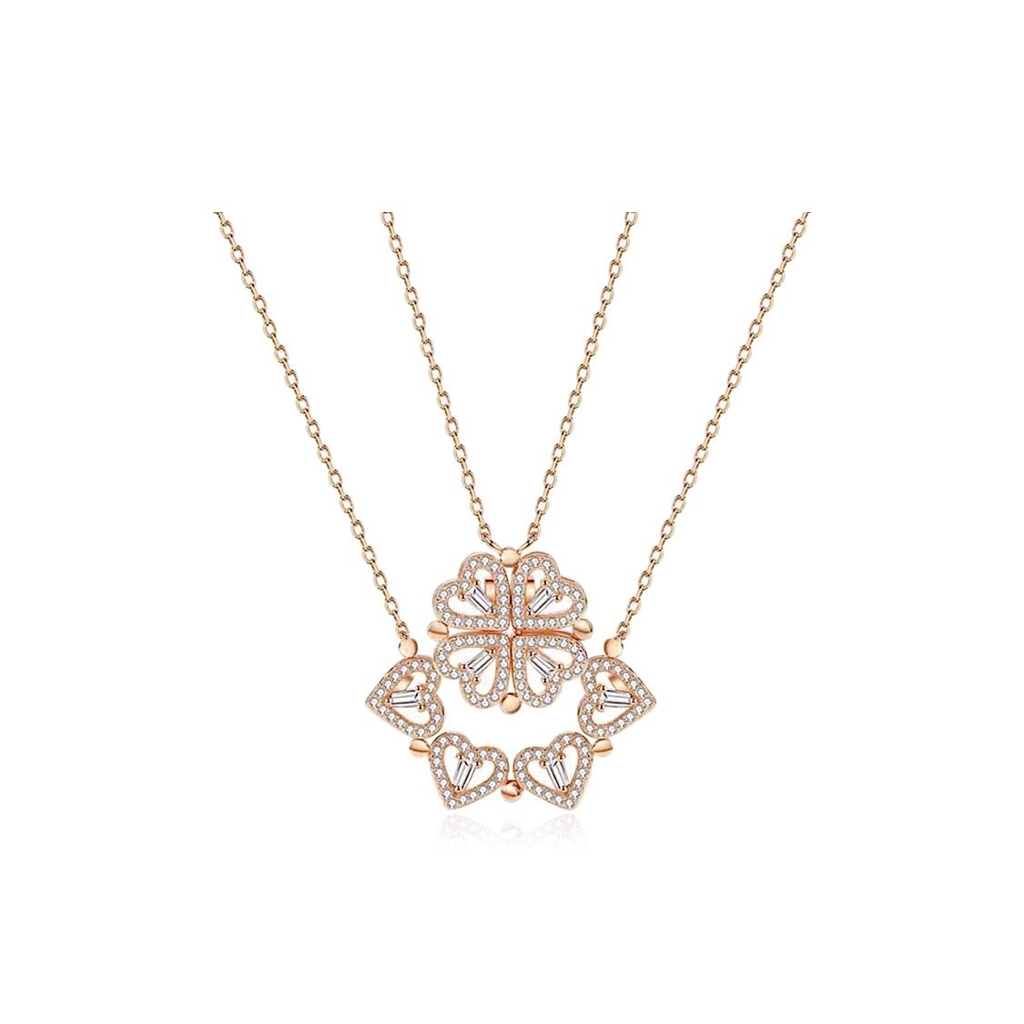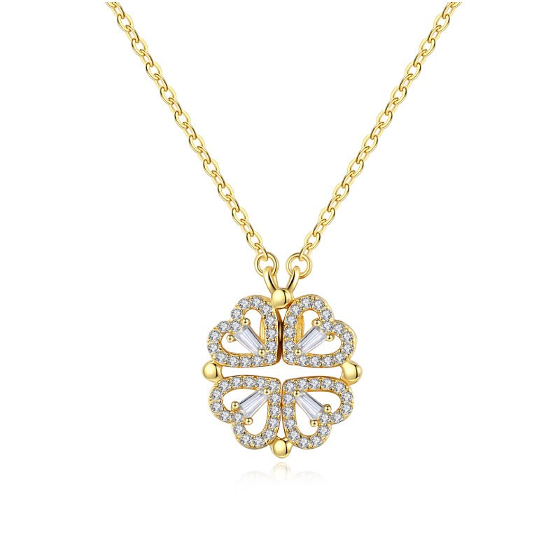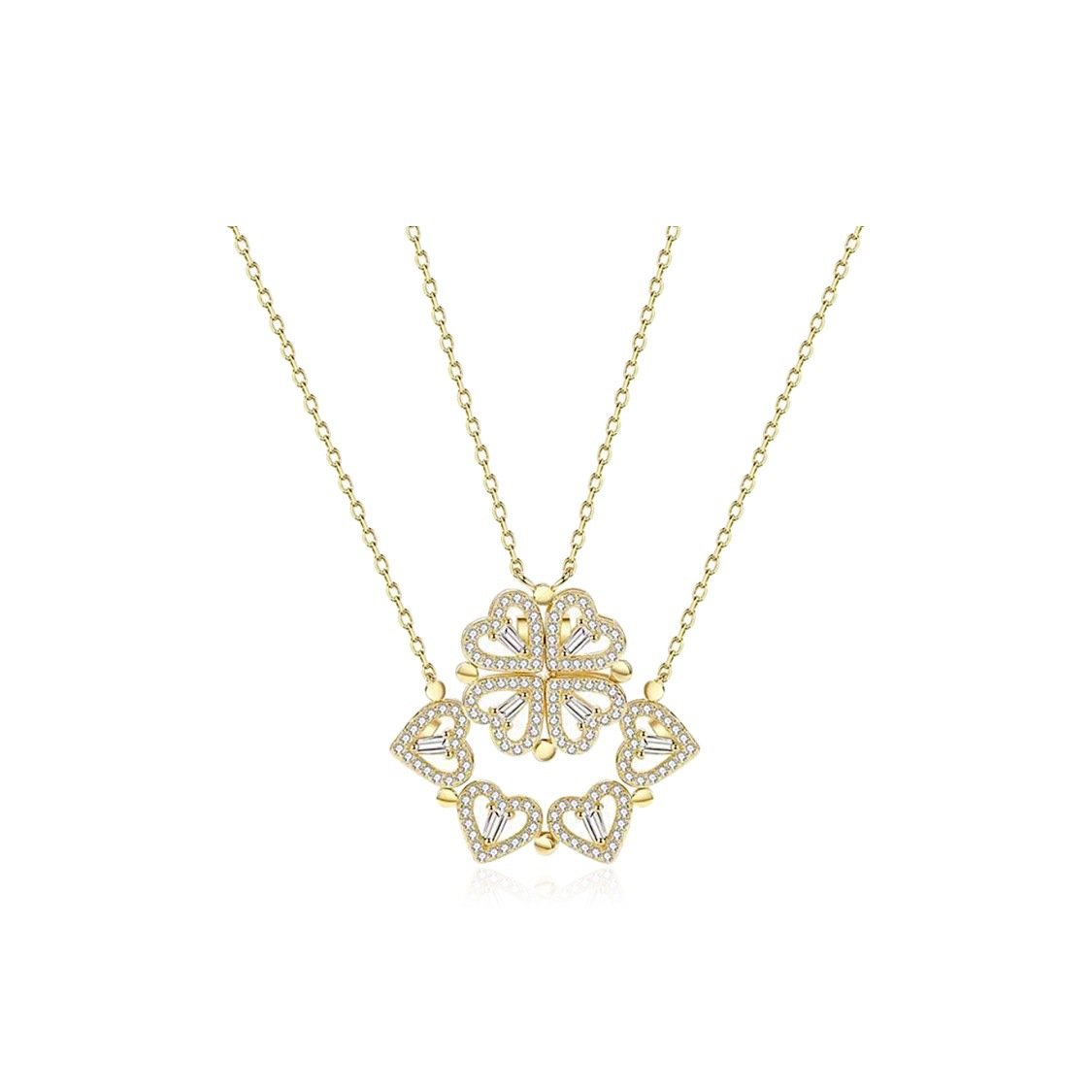 Convertible Four Heart Clover Gold Pendant Necklace | 18K Plated Crystal Accent Detachable Clover Necklace