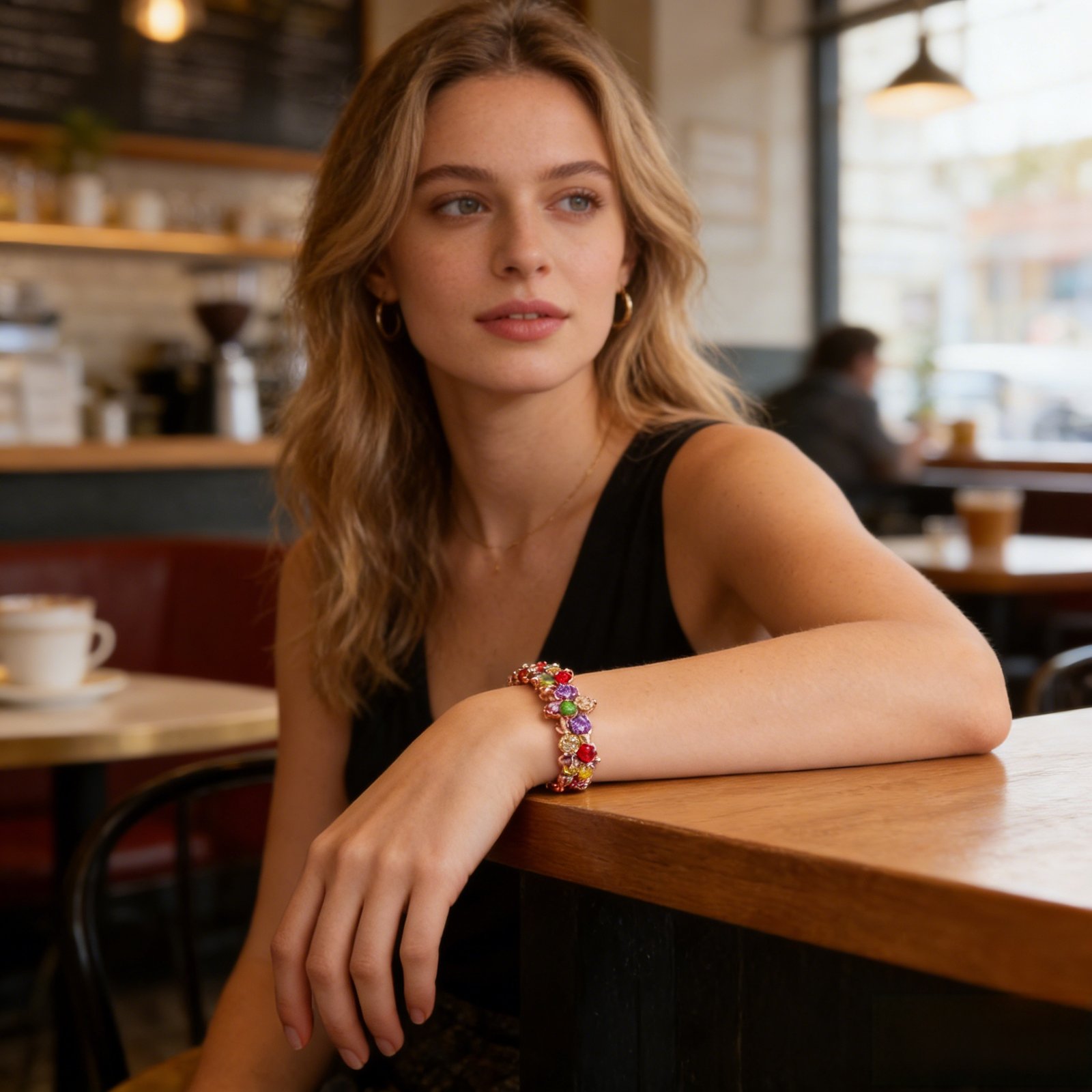 Whether treating yourself or searching for a vibrant gift, this rainbow crystal bracelet celebrates playful elegance and timeless charm.