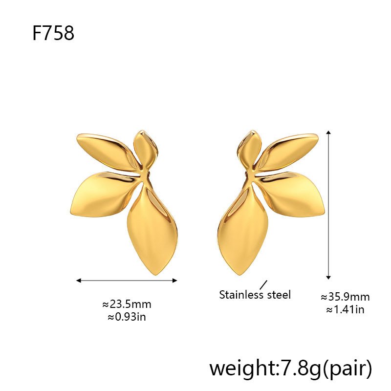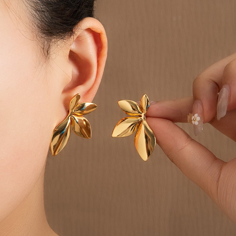 Inspired by natural leaf forms, these minimalist stainless steel leaf stud earrings feature a clean,sculptural silhouette with a high-polish mirror finish. The smooth curves and botanical shape createa modern yet timeless look, making them a versatile accessory for everyday wear.