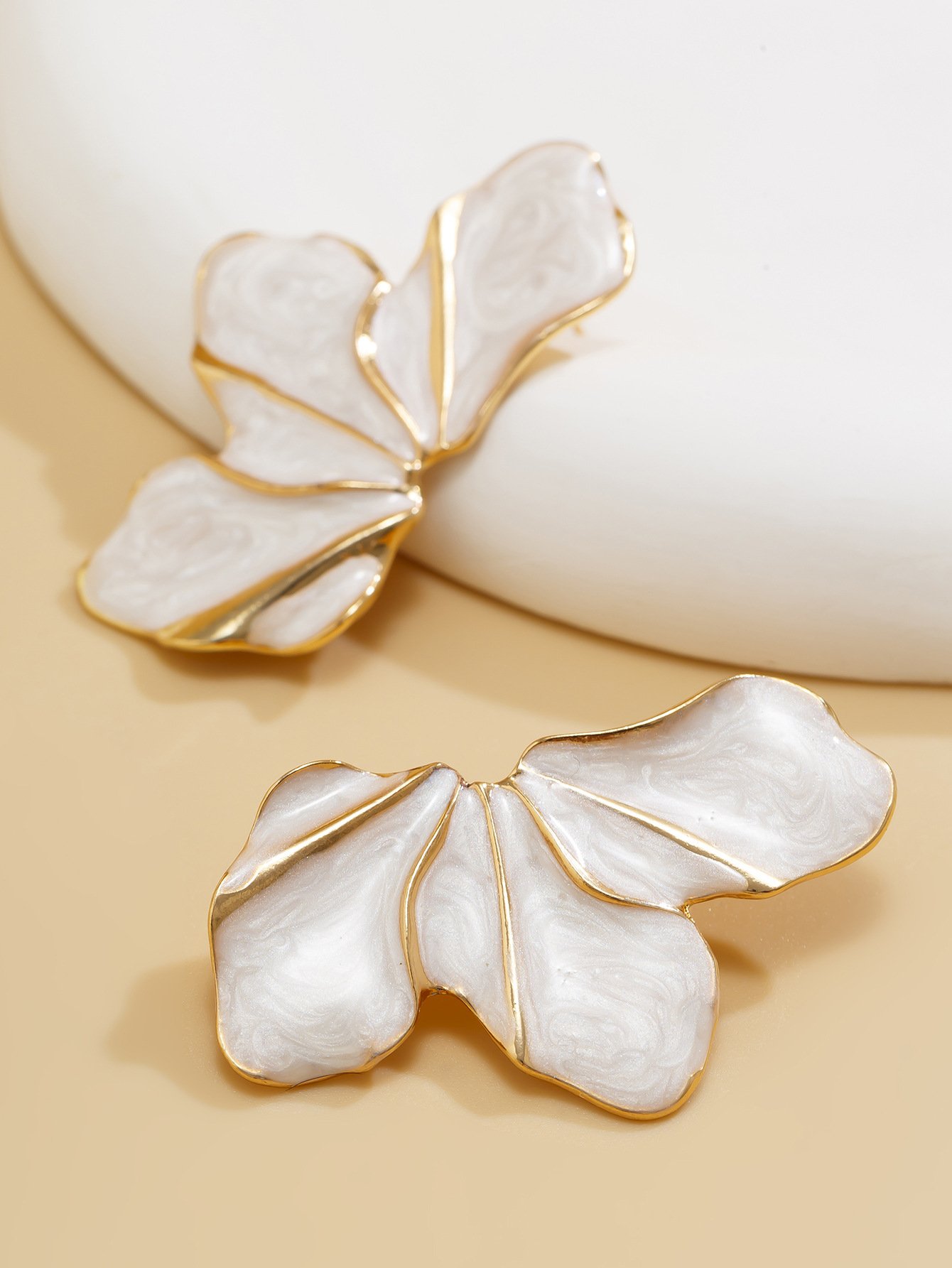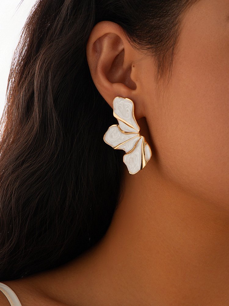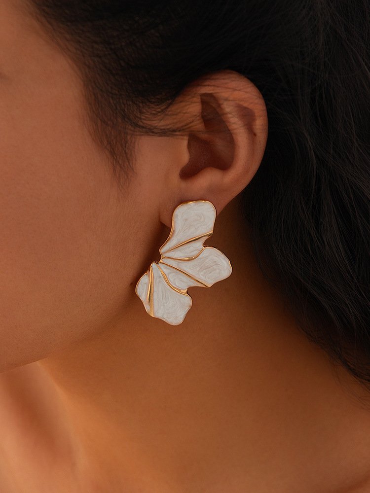 White Enamel Gold Trim Floral Statement Earrings 18K Plated Abstract Petal EarringsAvailability: 1989 in stock