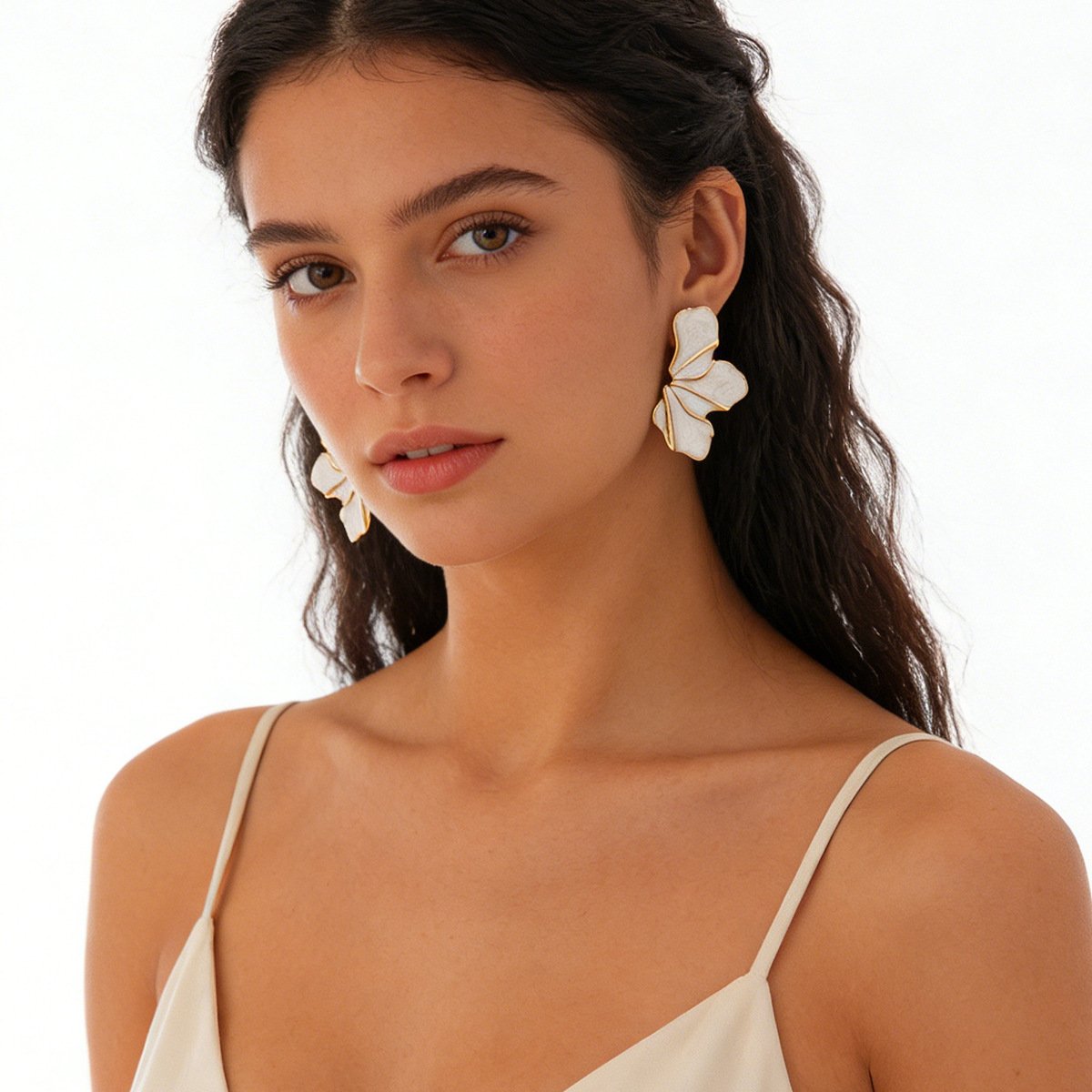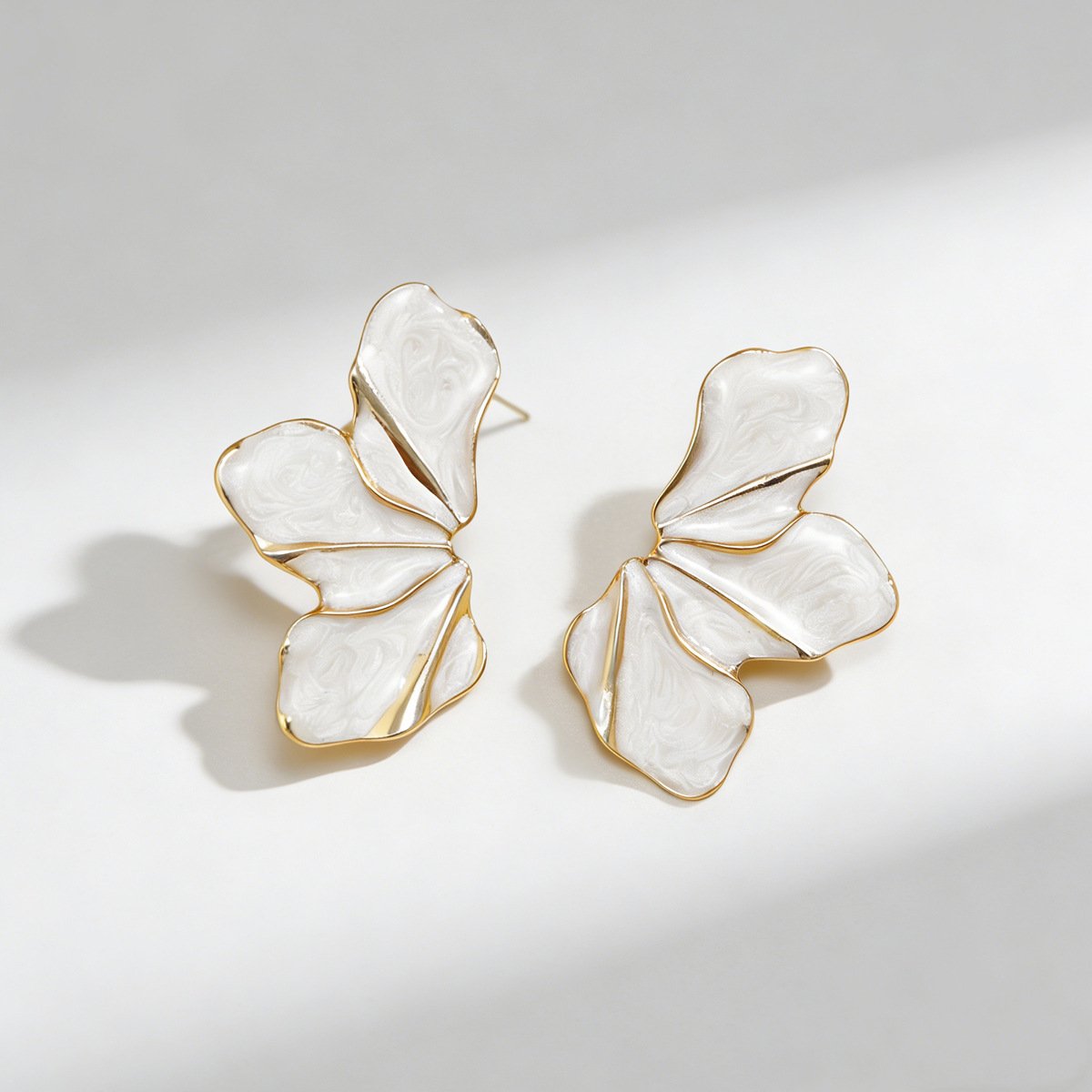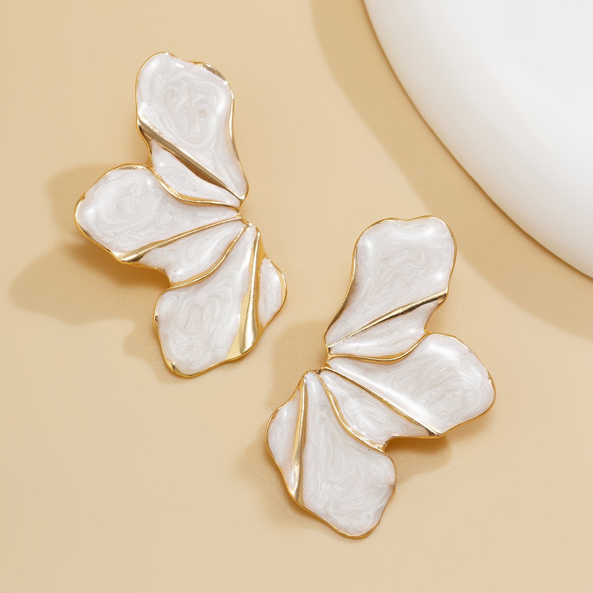 White Enamel Gold Trim Floral Statement Earrings 18K Plated Abstract Petal EarringsAvailability: 1989 in stock